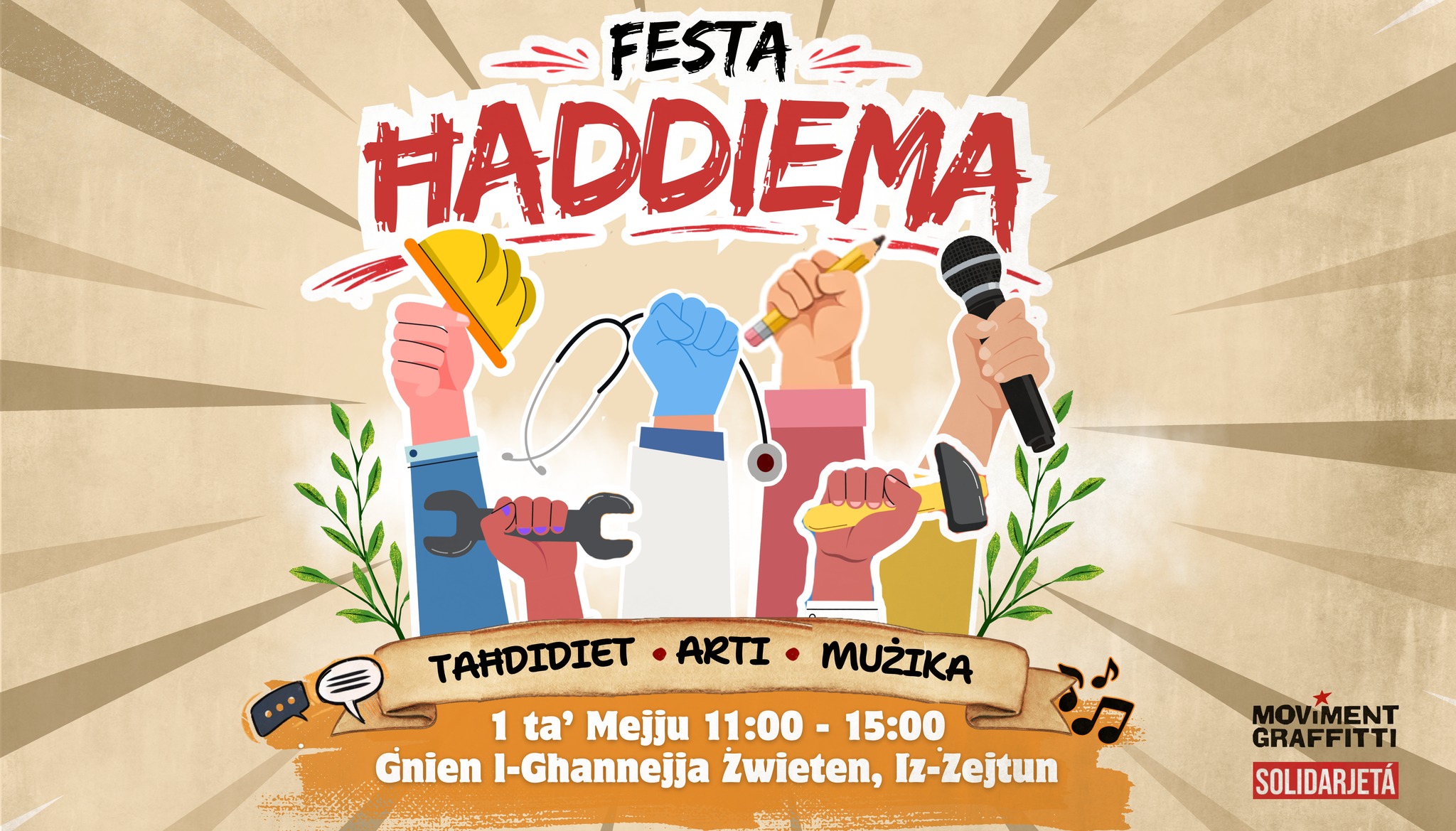 Join us for Festa Ħaddiema (Workers’ Fest) on Friday 1st May 2026, International Workers’ Day, between 11:00 and 15:00 at the Ġnien l-Għannejja Żwieten in Żejtun to remember the many […]
